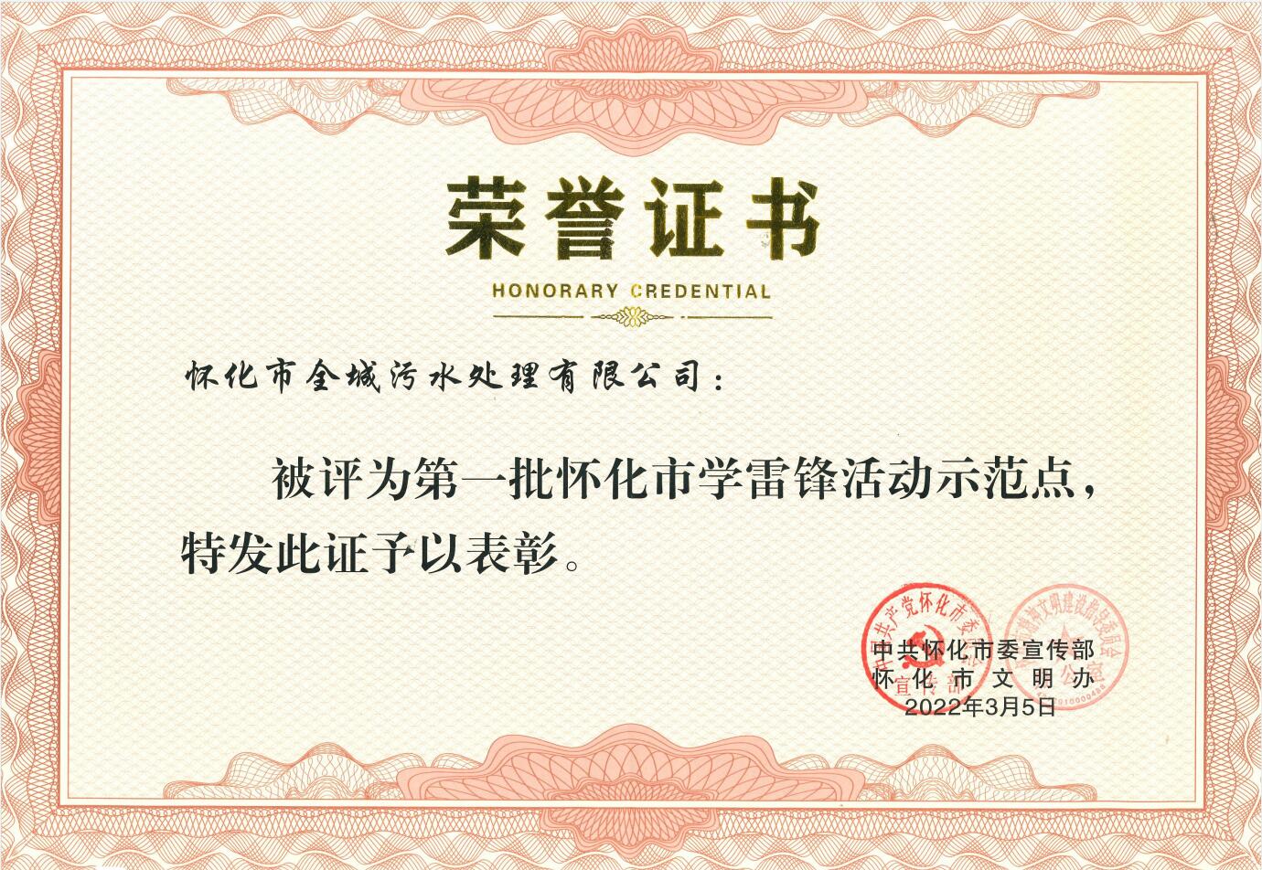 2022年3月被中共懷化市委宣傳部評為懷化市第一批“學(xué)雷鋒活動示范點(diǎn)”榮譽(yù)稱號
