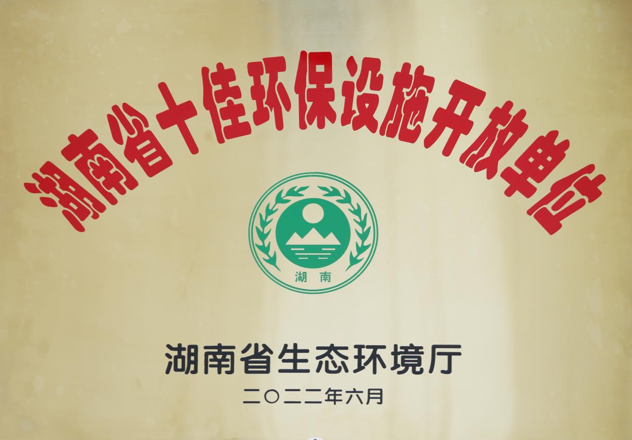 2022年6月被湖南省生態(tài)環(huán)境廳授予“湖南省十佳環(huán)保設(shè)施開放單位”
